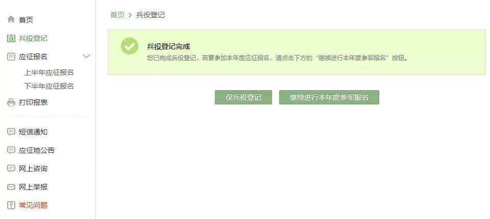 在这个页面中,会告知我们报名时间以及参军的政策说明,建议看后,点击“进行兵役登记”,迈出你军旅生涯的第一步吧!