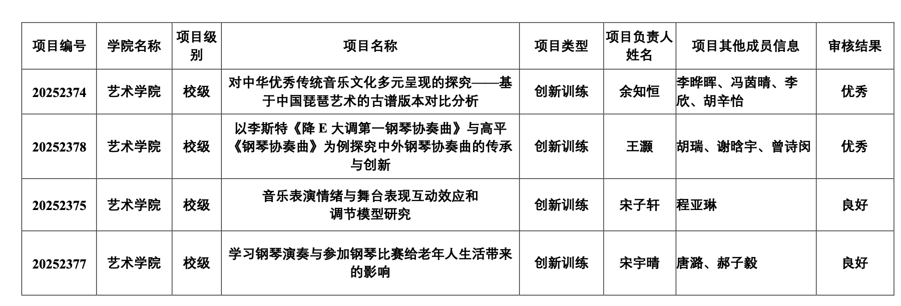 根据《教务部关于开展2025年大学生创新训练计划项目结题验收工作的通知》(教务〔2025〕242号)有关规定,我院组织了2025年大学生创新创业训练计划项目结题验收工作。经评审,现将结果公示如下: